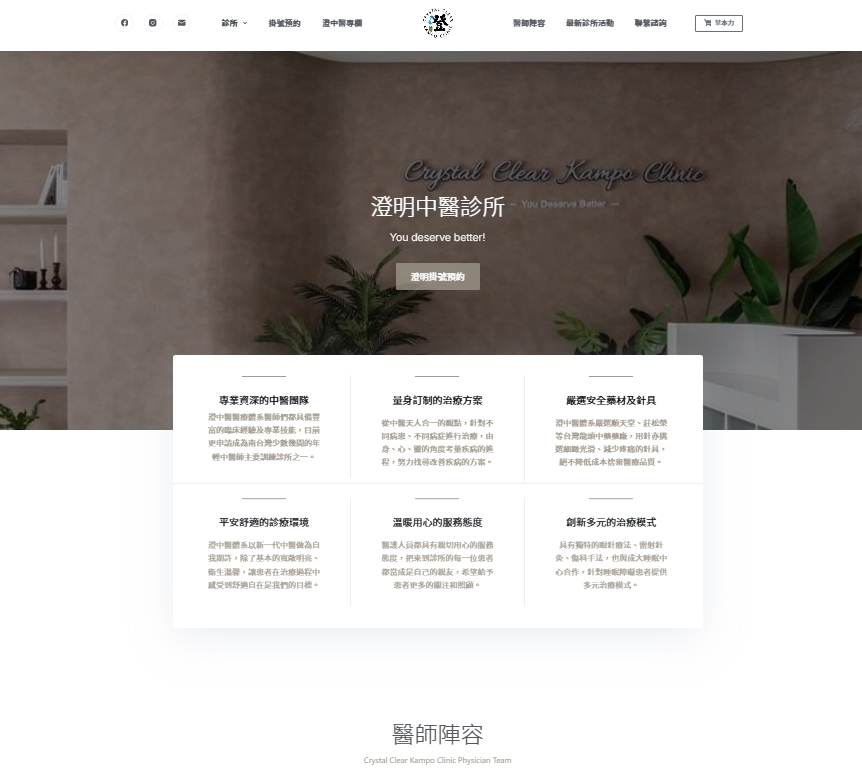澄明中醫診所 #品牌網站 #形象網站 #中醫診所 澄明/澄美中醫診所 Design 中醫診所|品牌官網建置 Description 內容描述 網站以象徵療癒與人文的溫潤色調為主軸,營造出安心且具溫度的醫療專業形象。版面採用高聚焦的流暢佈局,移除多餘干擾,引導使用者專注於醫療服務的核心價值。我們將艱澀的中醫診療項目轉化為親切易懂的視覺資訊,並融合層次分明的預約動線,不僅強化了醫患間的信任感,更有效將訪客流量轉化為實際的門診預約名單。透過視覺心理學的信任佈局,運用專業形象照與清晰的行動呼籲,大幅降低患者的決策猶豫,提升掛號轉換率。 網站方案 品牌官網 服務/客製項目 網站設計,社群經營 製作團隊 知島設計團隊 前往瀏覽作品 返回作品集